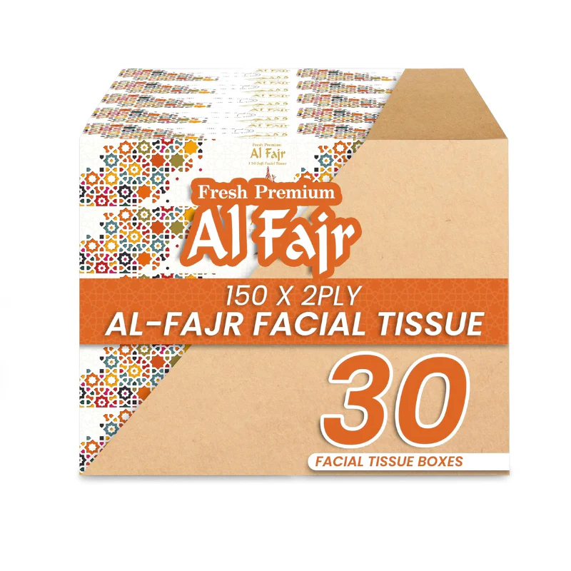 Al Fajr Facial Tissue 150 Sheets 2-Ply is crafted to provide superior softness with added strength for everyday hygiene needs. The 2-ply construction ensures better absorbency and durability, making it ideal for home, office, restaurants, clinics, and hospitality use. Gentle on skin yet strong in performance, Al Fajr Facial Tissues offer dependable quality for daily comfort. Available in 1 PKT, 2 PKT, and 6 PKT options to suit both personal and bulk requirements.
