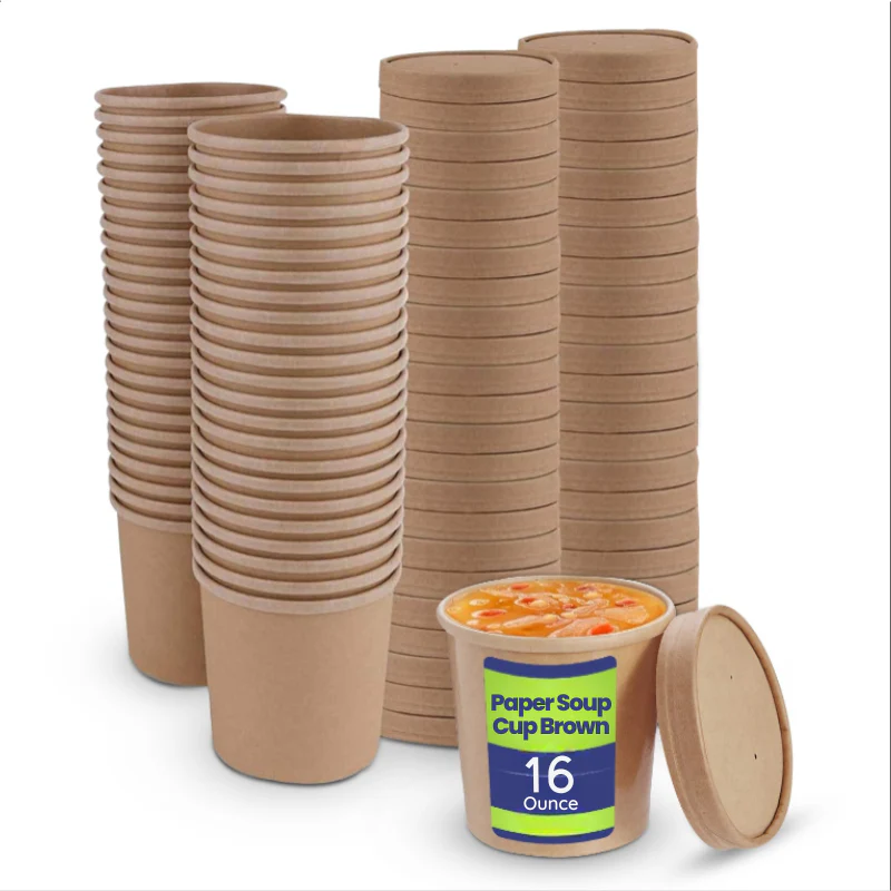 Brown Disposable Soup Cups with Lids Takeaway & Food Packaging