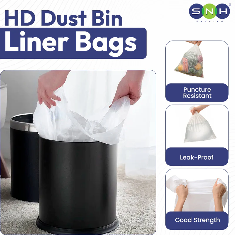 Our HD Dust Bin Liners (50×60 cm) are heavy-duty trash bags designed for domestic, commercial, and industrial use. Made from high-quality HD (High-Density) plastic, these liners provide strength, durability, and tear-resistance, making them ideal for waste management in offices, restaurants, hospitals, and homes.